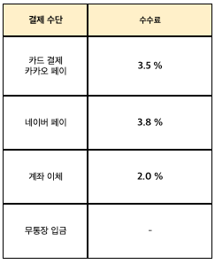 ✅ 결제 수단 별 수수료 안내